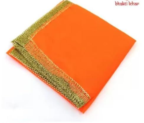 Satin Silk Pooja Altar Cloth for God Mandir | Diwali Pooja Mat for Puja Table, God Chowki Aasan, Temple, Mandir and Multipurpose Use Altar Cloth (1 Meter, Pack of 2, Orange & Red)